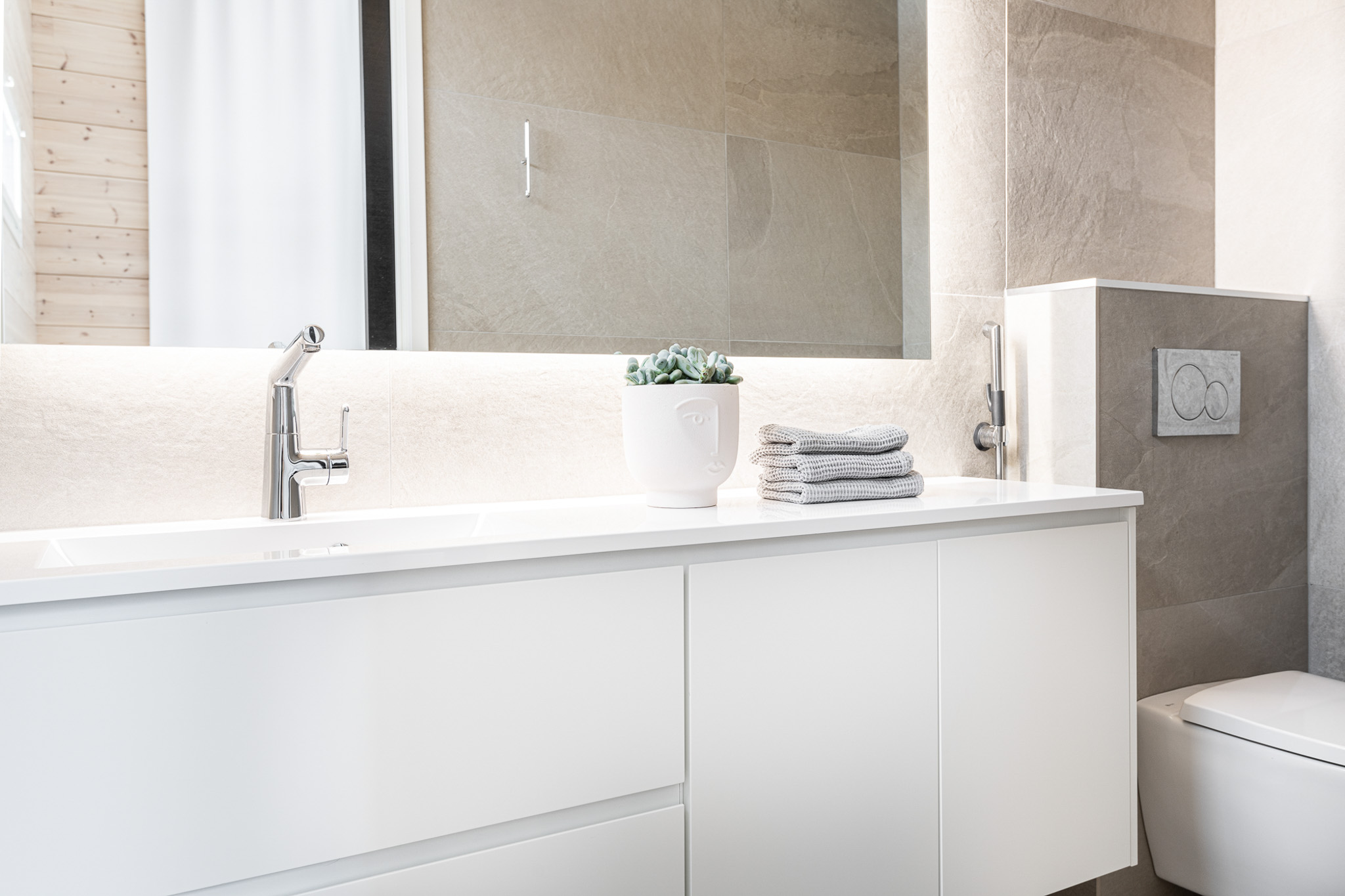 "Sain Mialta erinomaista palvelua uuden kylpyhuoneeni kalusteiden suunnittelussa. Hän tarttui minulle ainutlaatuiseen projektiin innolla ja tarjosi sopivan määrän vaihtoehtoja. Mia vaivautui jopa etsimään kodinkoneliikkeestä kalusteisiini sopivat pyykkikoneet! Yhteydenpito Mian kanssa oli nopeaa ja selkeää. Tarmokas ja ystävällinen ammattilainen!"
